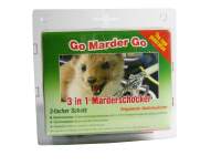 Das Profigerät verjagt Marder durch elektrisch auf ca. 200-300 V/DC aufgeladene Hochspannungsplättchen durch Elektroschock im Kfz- Motorraum (nur schwache Stromstösse, die den Marder nur verjagen und nicht töten) und durch starke, aggressiv pulsierende Ultraschalltöne. Frei montierbare Plättchen und ein eingebauter Batteriewächter (Entladungsschutz) vervollständigen den Marderschreck 3in1. KANN an Klemme 15 angeschlossen werden. Wenn das Gerät nicht an Klemme 15 angeschlossen wird, läuft es im Dauerbetrieb.