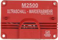 Das neu entwickelte Marderabwehrgerät M2500 erzeugt pulsierende, sehr intensive sinusförmige Ultraschalltöne. Diese aggressiven Töne sind den Warn- und Angstschreien von Wildtieren angeglichen und werden von Mardern als äusserst lästig empfunden und daher möglichst gemieden. Das M2500 Ultraschallgerät wird in den Motorraum eingebaut. Das Gerät sollte nicht direkt mit Schmutz- oder Spritzwasser in Berührung kommen. Es sollte so eingebaut werden, dass die vorderen und seitlichen Schallausgänge direkt in die bissgefährdeten Stellen strahlen. Es ist darauf zu achten, dass das M2500 nicht unmittelbar an den Auspuffkrümmer oder direkt an den Motor geflanscht wird. Übermässige Hitze kann das Gerät zerstören.